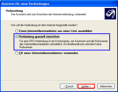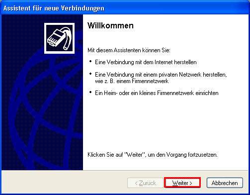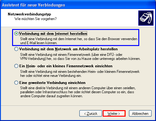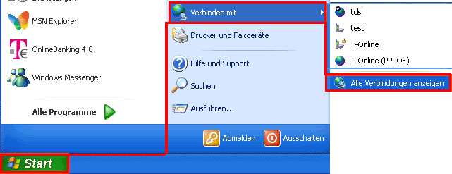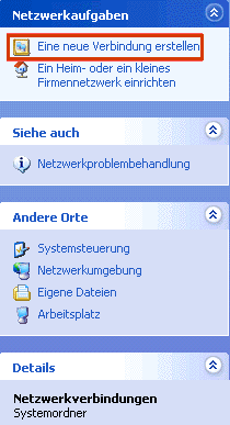 --> Systemsteuerung". Im Menü "Systemsteuerung" klicken Sie auf das Icon "Netzwerkverbindun...". Im Menü "Netzwerverbindungen" klicken Sie auf den Link "Eine neue Verbindung erstellen". Nun öffnet sich der