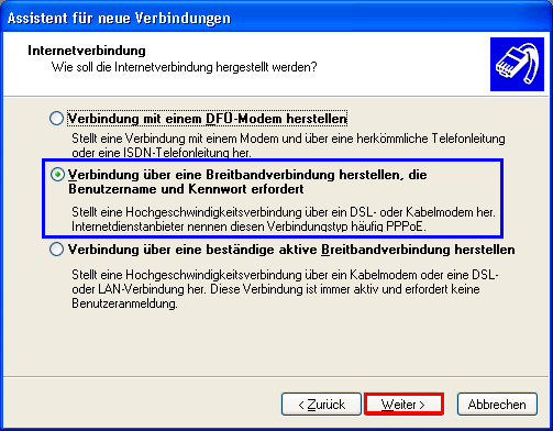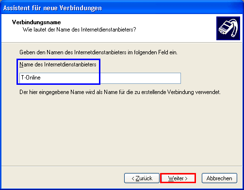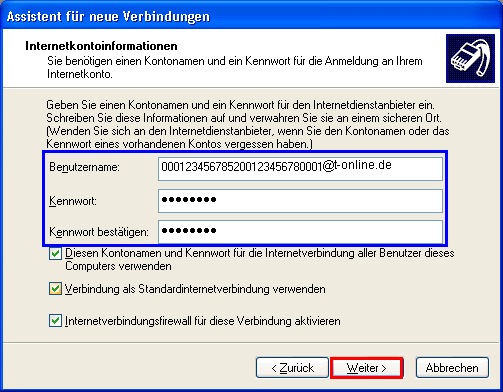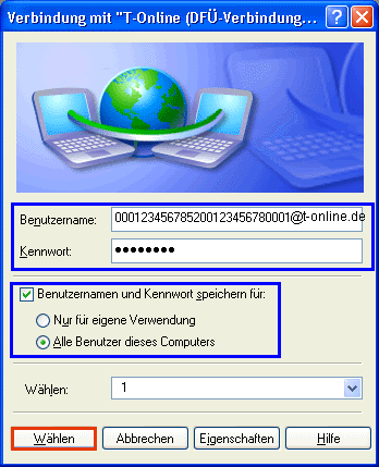 müssen Sie auf den Button Nun öffnet sich das Fenster "Verbindung mit T-Online