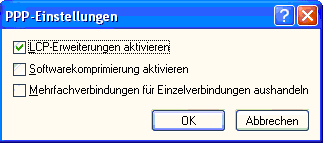 mindern. Softwarekomprimierung und IP-Headerkomprimierung deaktivieren Windows XP ist für den Breitbandzugang bereits optimiert. Von der Verwendung von Registry-Tweaks ("Tuning") oder sog. Optimierungstools ist abzuraten. Wenn Sie Ihren DSL-Zugang noch etwas optimieren wollen, sollten sie die Softwarekomprimierung und IP-Headerkomprimierung deaktivieren. Diese Features werden von T-DSL nicht unterstützt. Klicken Sie auf Start - Verbinden mit... und öffnen Sie mit einem Rechtsklick auf die angelegte DSL-Verbindung dessen Eigenschaften-Fenster. Klicken Sie dann auf Netzwerk. Unter "Typ der herzustellenden Breitbandverbindung" (hier sollte "Point-to-Point Protokoll über Ethernet" stehen) klicken Sie auf "Einstellungen" und entfernen das Häkchen bei "Softwarekomprimierung aktivieren" (siehe Bild):